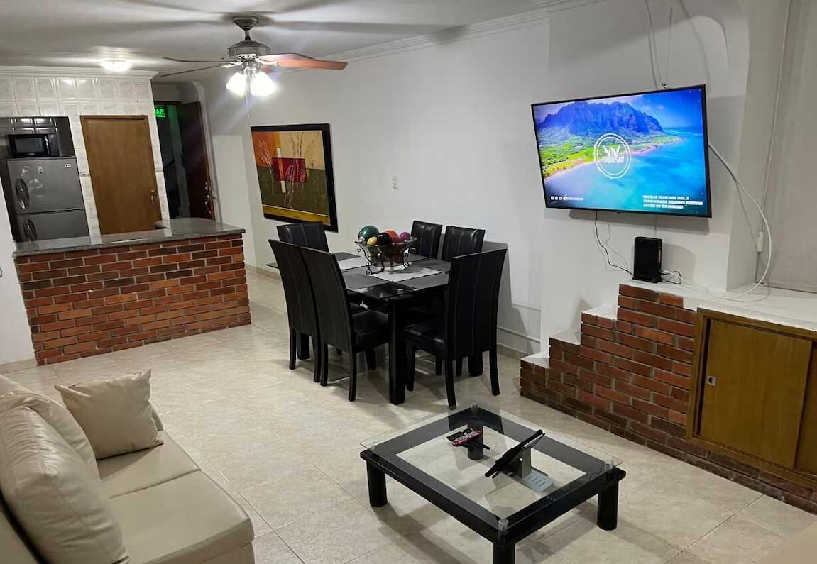 This spacious 3-bedroom, 2-bath apartment is located in a visitor-friendly building and offers premium amenities, including a pool, jacuzzi, Wi-Fi, and air conditioning. The building features on-site security and a convenient laundry drop-off service. A supermarket, restaurants, and a pharmacy are located next door or directly across the street. The beach entrance is a 2 minute walk. The clock tower is just a 10-minute drive, and the airport is a short 10–20 minute drive.